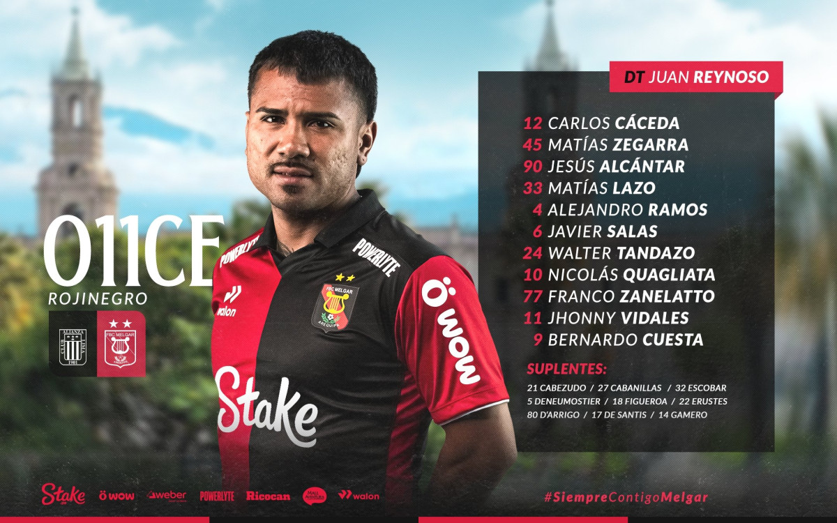- Melgar: Carlos Cáceda; Matías Lazo, Alec Denemoustier, Jesús Alcántar, Matías Zegarra; Javier Salas, Walter Tandazo, Cristian Bordacahar, Nicolas Quagliata, Franco Zanelatto y Bernardo Cuesta.