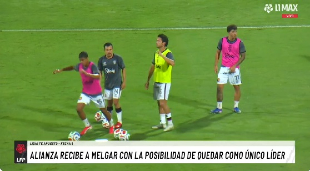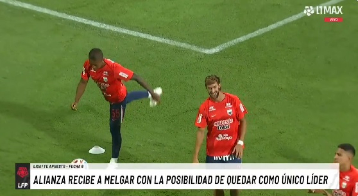 Los jugadores de ambos clubes ultiman detalles previos al partido sobre la cancha del Alejandro Villanueva. Fotos: captura de L1 Max