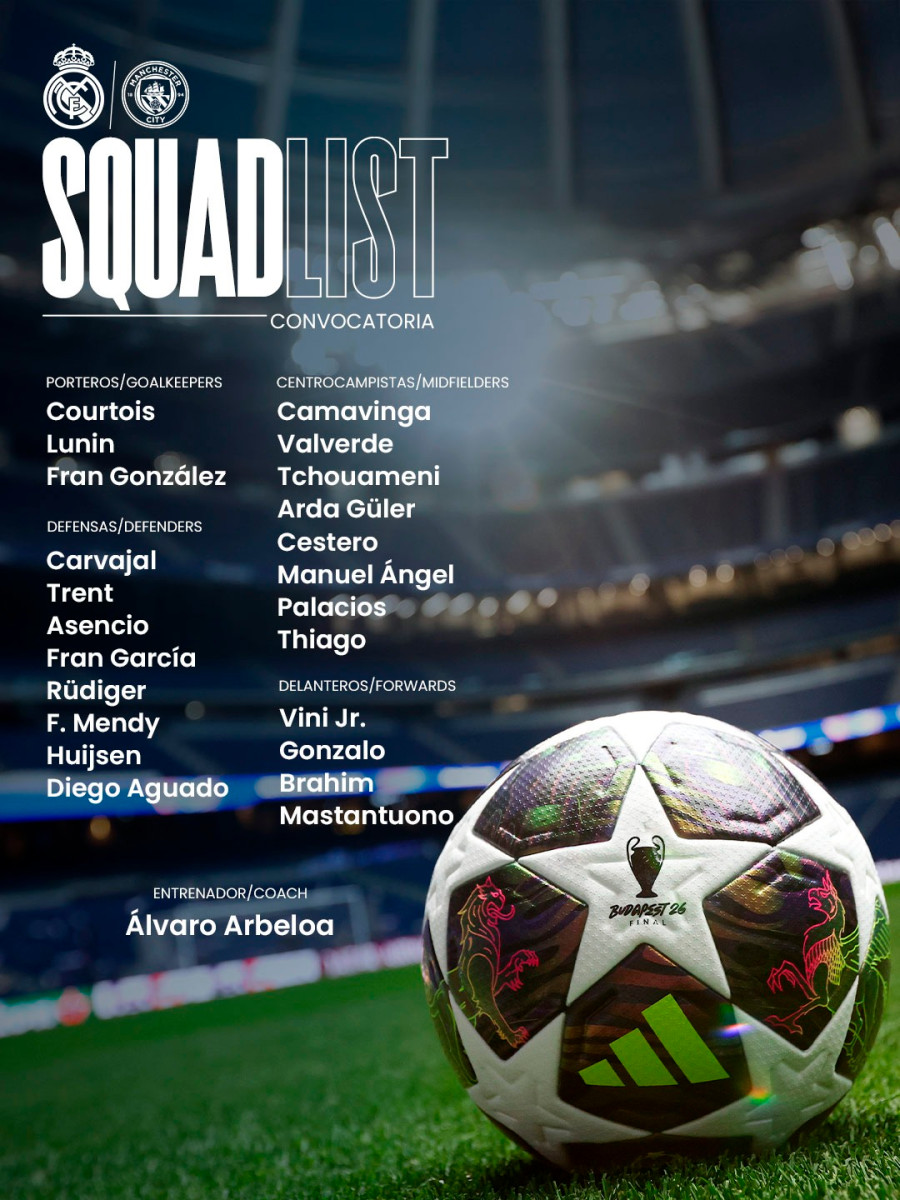 • Manchester City: Gianluigi Donnarumma; Matheus Nunes, Rúben Dias, Marc Guéhi, Nico O'Reilly; Rodri, Bernardo Silva; Rayan Cherki, Phil Foden, Antoine Semenyo y Erling Haaland.