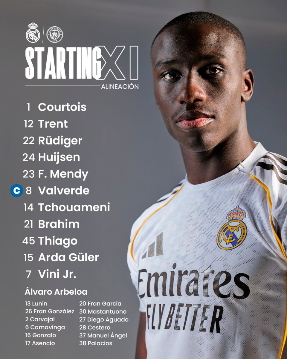 • Real Madrid: Thibaut Courtois; Alexander Trent-Arnold, Raúl Asencio, Antonio Rüdiger, Ferland Mendy; Federico Valverde, Aurélien Tchouaméni, Eduardo Camavinga; Arda Güler, Vinicius Jr y Gonzalo García.