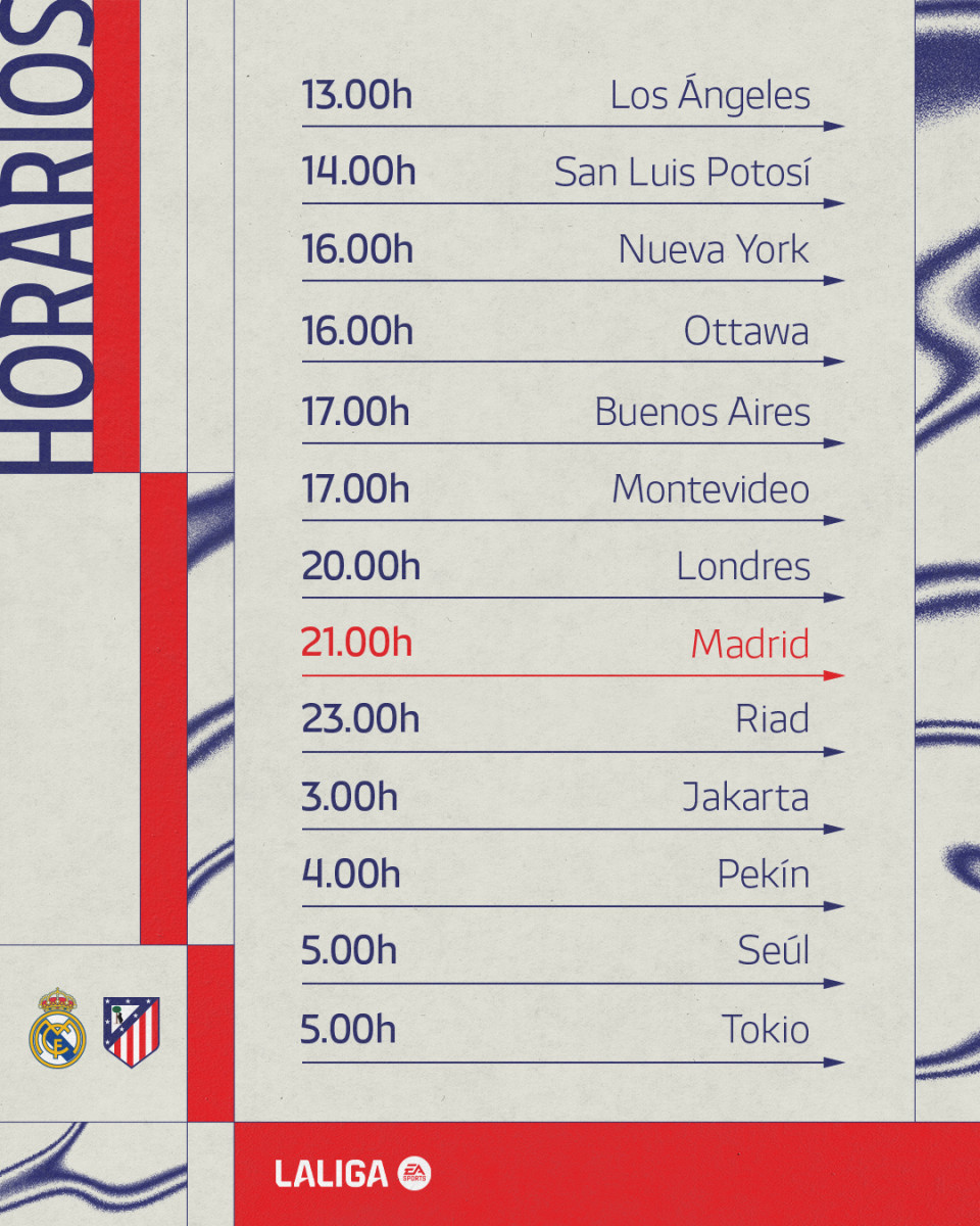 En territorio peruano, el derbi entre merengues y colchoneros, correspondiente a la fecha 29 de LaLiga, se podrá seguir desde las 3.00 p. m. Si te encuentras en otro país, consulta la siguiente guía de horarios.