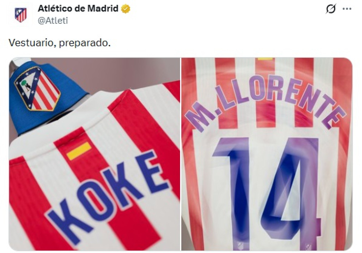 El camerino del Atleti en el Santiago Bernabéu ya tiene todo preparado. Foto: captura de Atlético de Madrid/X