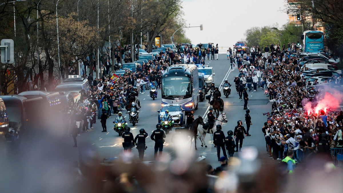 En la previa, una buena cantidad de hinchas acompañó el recorrido del bus que traslado al plantel hasta el estadio. Foto: Real Madrid