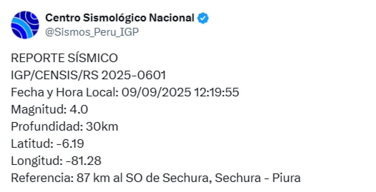 Según el reporte sísmico del Instituto Geofísico del Perú, durante la mañana del martes 9 de septiembre, a las 12:19 a. m., se registró un sismo de magnitud 4,0 en la ciudad de Sechura. El movimiento telúrico tuvo su epicentro a 87 km al suroeste de Sechura, provincia de Sechura, región Piura.